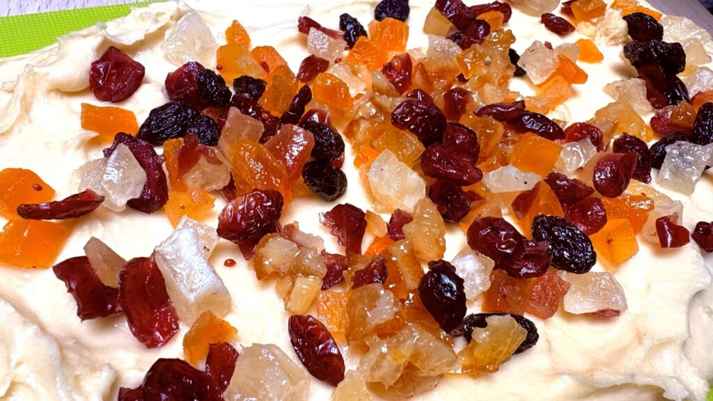 生地を混ぜてこねてという作業をした後に、中に入れるドライフルーツを生地に投入!